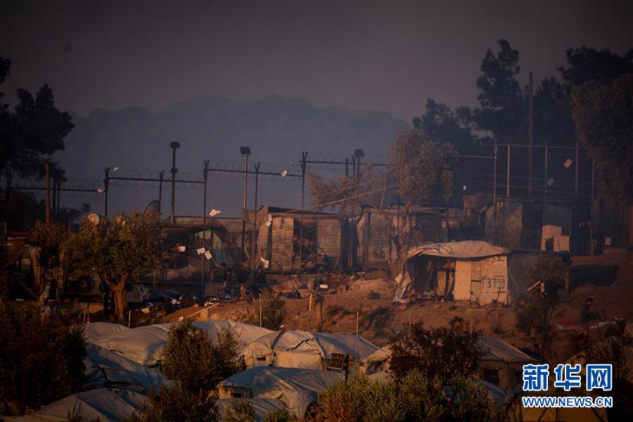 这是9月9日在希腊莱斯沃斯岛拍摄的火灾过后的莫里亚难民营。 据雅典-马其顿通讯社报道,位于莱斯沃斯岛的希腊最大难民营莫里亚难民营9日凌晨发生火灾,数以千计的难民和非法移民逃离,目前火势已得到控制,但尚无人员伤亡报告。 新华社发(帕纳吉奥提斯·帕拉斯卡斯摄)