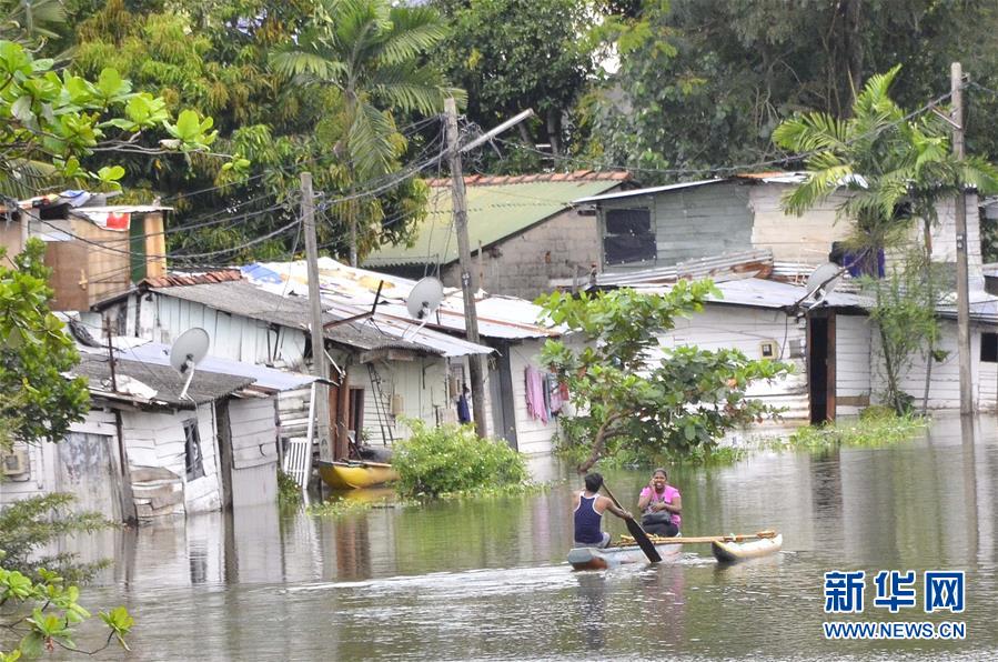9月9日,暴雨过后,人们在斯里兰卡科伦坡被洪水淹没的街道上划船。 南亚季风雨季从每年6月持续至9月,雷电暴雨天气频发。 新华社发