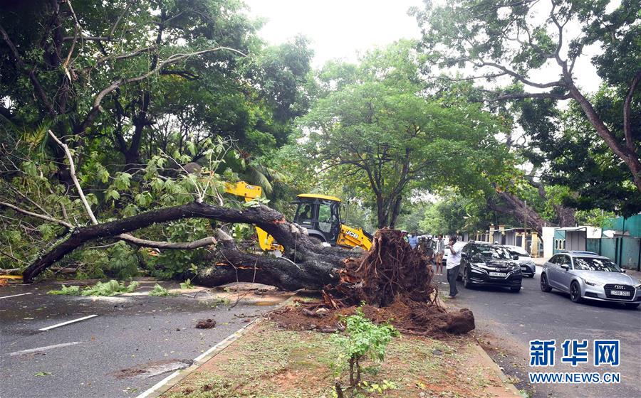 9月9日,在斯里兰卡科伦坡,一棵大树在暴雨中被连根拔起。 南亚季风雨季从每年6月持续至9月,雷电暴雨天气频发。 新华社发(加扬·萨米拉摄)
