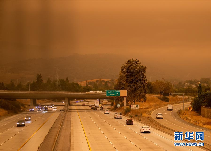 9月9日午后拍摄的照片显示,美国加州硅谷地区的天空被烟尘笼罩。 美国加州北部山火连日燃烧形成的烟尘遮天蔽日。受其影响,9日白天,旧金山湾区如夜晚般昏暗。 新华社发(董旭东摄)