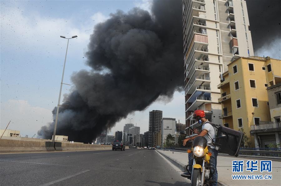 9月10日,在黎巴嫩首都贝鲁特,一名外卖快递员准备用手机拍摄港口区一处仓库起火后产生的浓烟。 黎巴嫩首都贝鲁特港口区一处仓库10日发生火灾,暂时没有人员伤亡报告。据当地媒体报道,火灾发生在当地时间13时30分左右。黎军方在社交媒体推特上发表声明说,起火地点为港口免税区内存放轮胎和油料的仓库。 新华社发(比拉尔·贾维希摄)