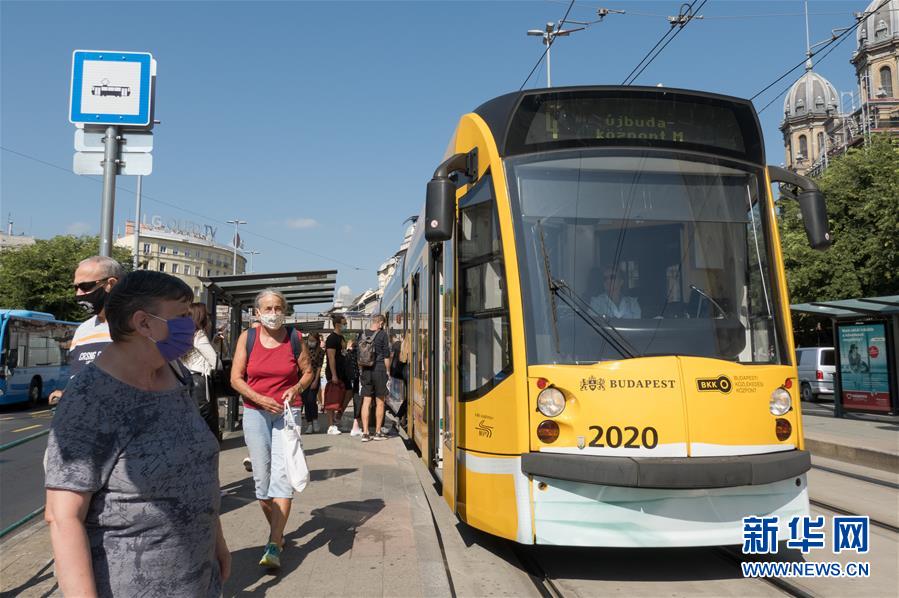 9月10日,在匈牙利布达佩斯,人们戴着口罩等待有轨电车。