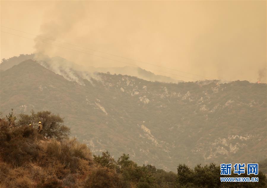 这是9月10日在美国洛杉矶县蒙罗维亚拍摄的安杰利斯国家森林公园燃烧的山火。 在美国加州南部,火场遍布洛杉矶、圣贝纳迪诺和圣迭戈三个县。洛杉矶东部丘陵地带的居民已经接到准备撤离通知。 新华社发