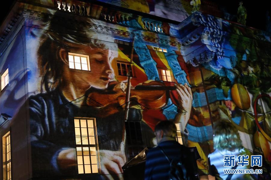 9月11日,在德国首都柏林,两名游客站在被灯光点亮的柏林国立歌剧院前。 一年一度的柏林灯光节11日正式开幕,多处地标性建筑被灯光点亮。本届灯光节将持续至9月20日。 新华社记者 单宇琦 摄