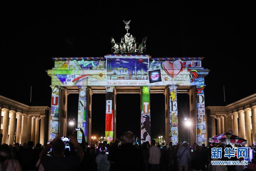 9月11日,德国首都柏林的勃兰登堡门被灯光点亮。 一年一度的柏林灯光节11日正式开幕,多处地标性建筑被灯光点亮。本届灯光节将持续至9月20日。 新华社记者 单宇琦 摄