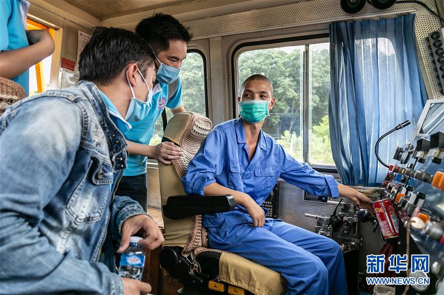 9月11日,在老挝中铁二局中老铁路万象铺轨基地,火车司机向老挝学员介绍工程列车。 当日,中老铁路运营期老挝籍学员代表约70人在老中铁路有限公司的组织下参观了中铁二局中老铁路万象铺轨基地,并乘坐工程列车体验已完成铺轨作业的铁路区段。 新华社发(凯乔摄)