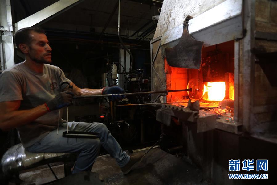 9月12日,在黎巴嫩北部城市的黎波里,一家玻璃制品厂的工人烧制玻璃制品。黎巴嫩首都贝鲁特港口区8月4日大爆炸造成贝鲁特大量建筑物受损,许多建筑物玻璃门窗毁坏严重。爆炸过后,很多玻璃废品被回收再利用。新华社发(比拉尔·贾维希摄)
