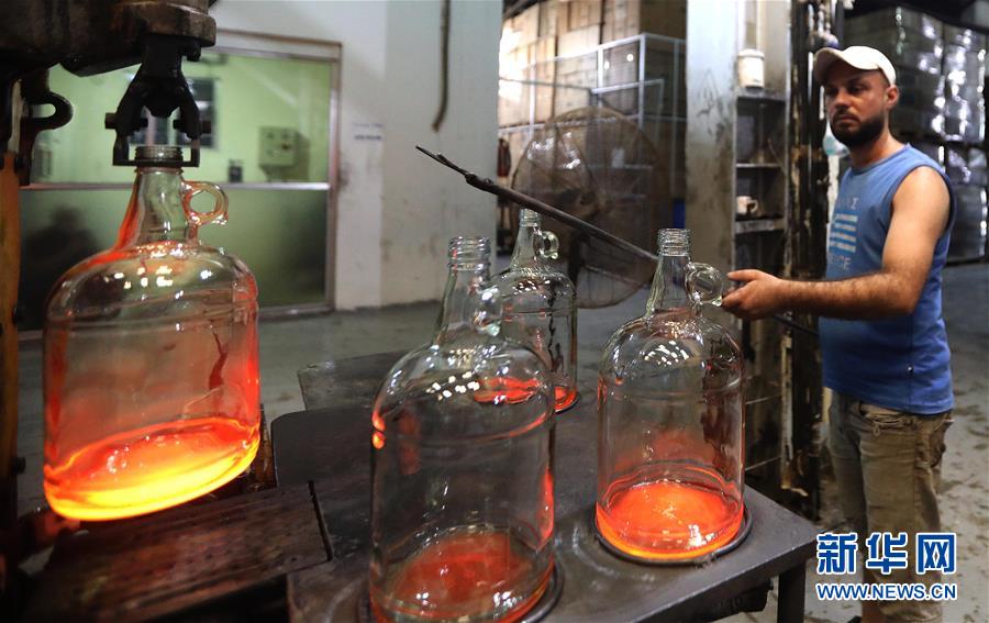 9月12日,在黎巴嫩北部城市的黎波里,一家玻璃制品厂的工人烧制玻璃制品。黎巴嫩首都贝鲁特港口区8月4日大爆炸造成贝鲁特大量建筑物受损,许多建筑物玻璃门窗毁坏严重。爆炸过后,很多玻璃废品被回收再利用。新华社发(比拉尔·贾维希摄)