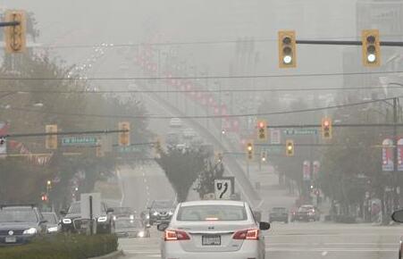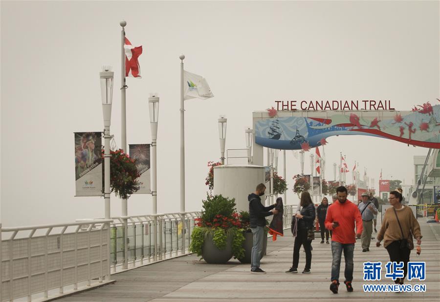 9月13日,在加拿大温哥华,人们在雾霾中漫步。当日,由于美国山火产生的烟尘向北扩散至加拿大西岸地区,温哥华空气污染状况持续,成为全球空气质量最差的城市之一。新华社发(梁森摄)