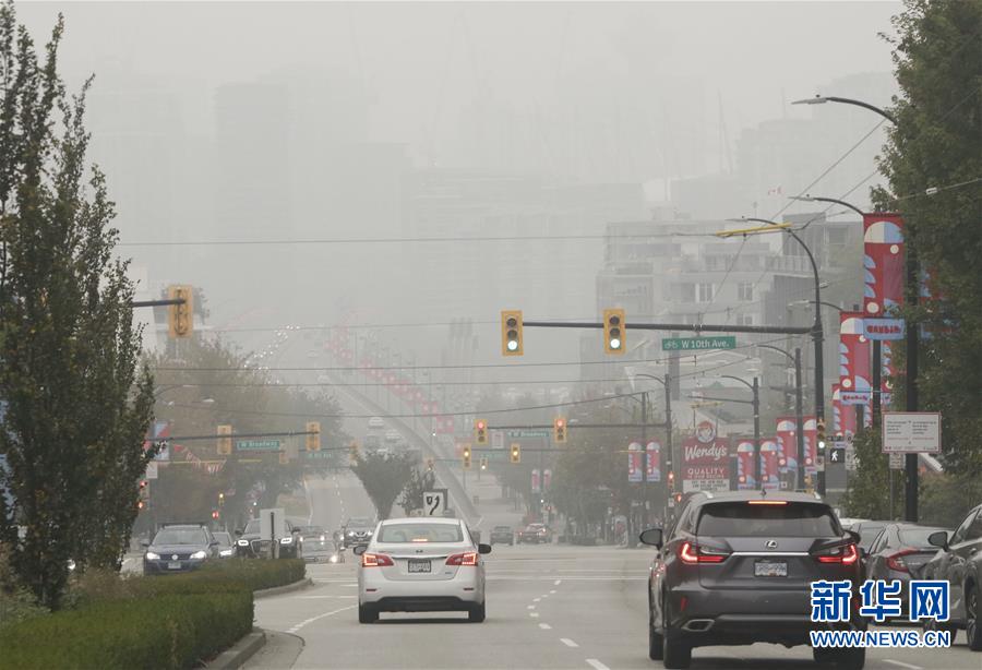 9月13日,在加拿大温哥华,建筑物笼罩在雾霾中。当日,由于美国山火产生的烟尘向北扩散至加拿大西岸地区,温哥华空气污染状况持续,成为全球空气质量最差的城市之一。新华社发(梁森摄)