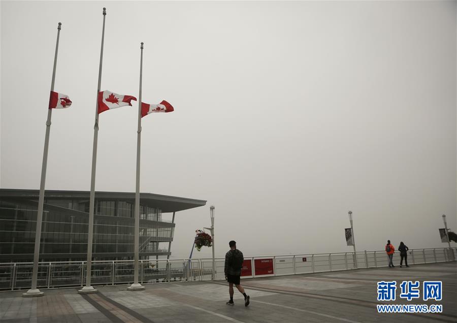 9月13日,在加拿大温哥华,人们在雾霾中漫步。当日,由于美国山火产生的烟尘向北扩散至加拿大西岸地区,温哥华空气污染状况持续,成为全球空气质量最差的城市之一。新华社发(梁森摄)