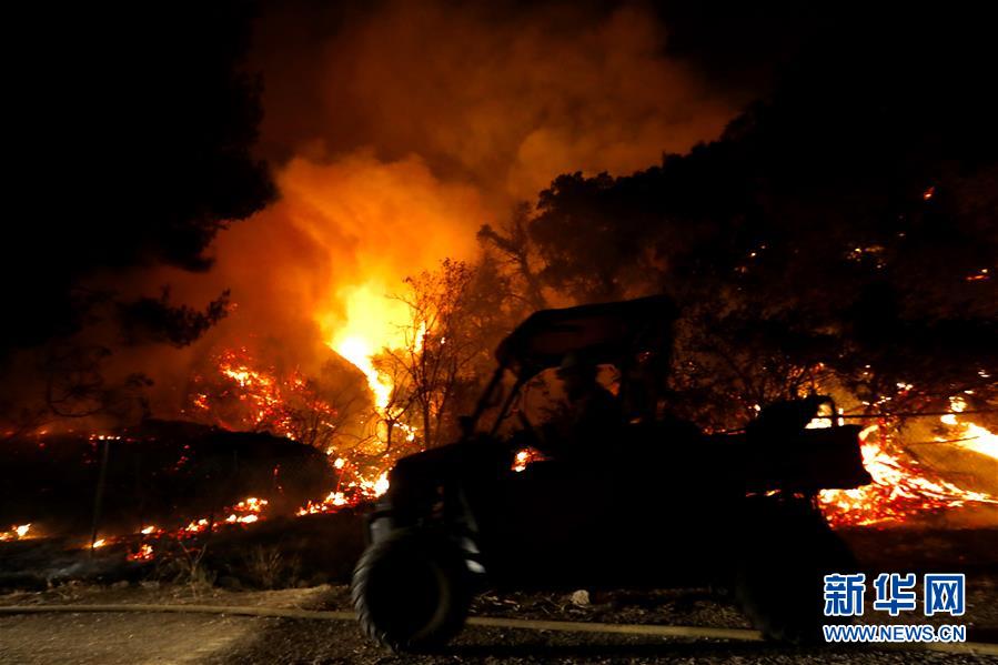 这是9月13日晚在美国阿卡迪亚附近山区拍摄的火场。 由于山火肆虐,9月13日,邻近火场的美国洛杉矶县阿卡迪亚市等地的部分居民被要求撤离家园。 新华社发
