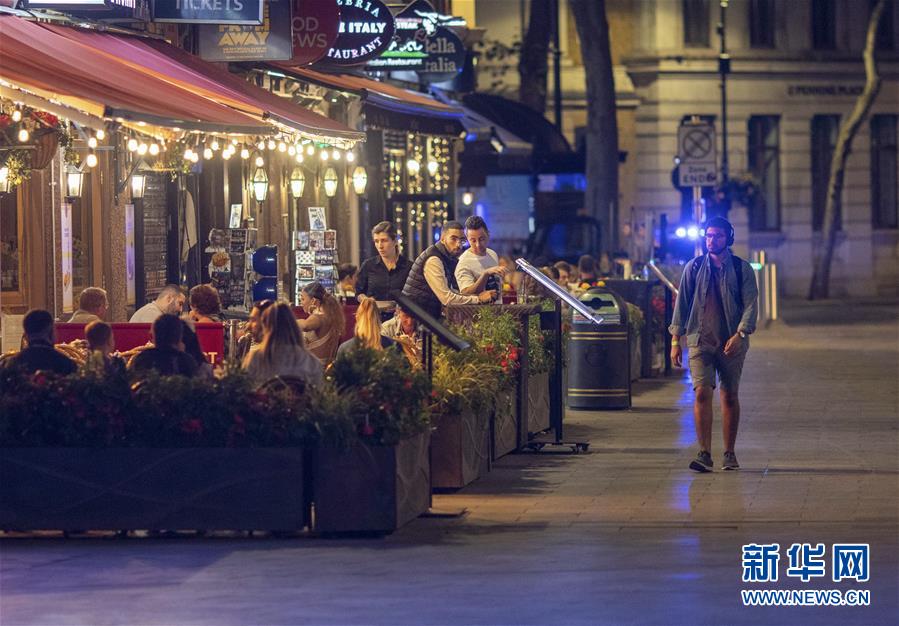 9月14日,人们在英国伦敦莱斯特广场的户外餐区就餐。 根据英国首相约翰逊宣布的疫情防控新举措,自9月14日起,除少数情况外,日常社交场合中的聚集人数不得超过6人,室内室外均适用,违者可能面临罚款等处罚。不过,学校和工作场合等并不受影响。 新华社发(蒂姆·爱尔兰摄)