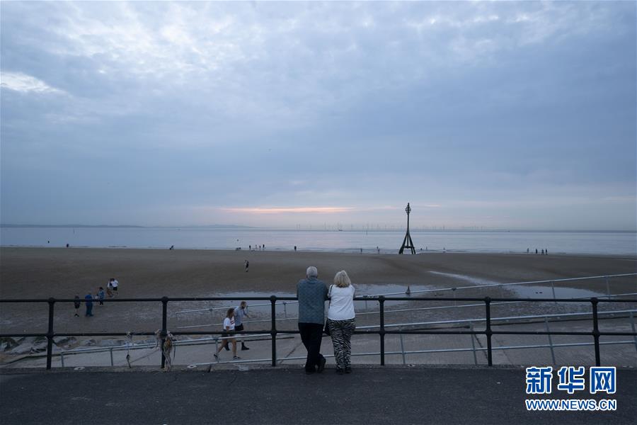 9月14日,人们在英国克罗斯比海边欣赏落日。 根据英国首相约翰逊宣布的疫情防控新举措,自9月14日起,除少数情况外,日常社交场合中的聚集人数不得超过6人,室内室外均适用,违者可能面临罚款等处罚。不过,学校和工作场合等并不受影响。 新华社发(乔恩·休珀摄)