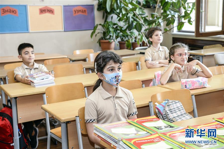 9月15日,在阿塞拜疆首都巴库的一所小学,学生在教室上课。 当日,阿塞拜疆2020-2021学年开学。 新华社发(巴巴耶夫 摄)
