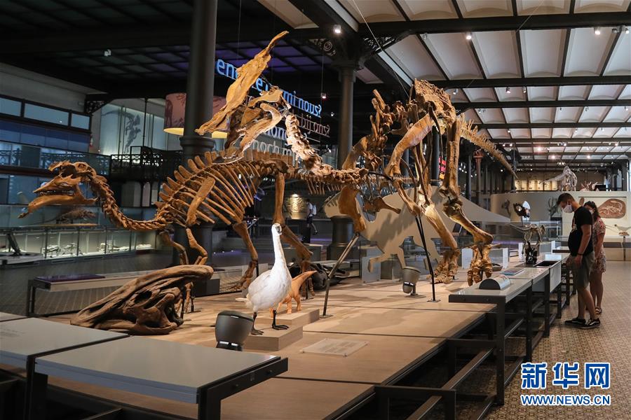 9月15日,在比利时布鲁塞尔的比利时皇家自然科学博物馆,人们参观恐龙模型。新华社记者 郑焕松 摄