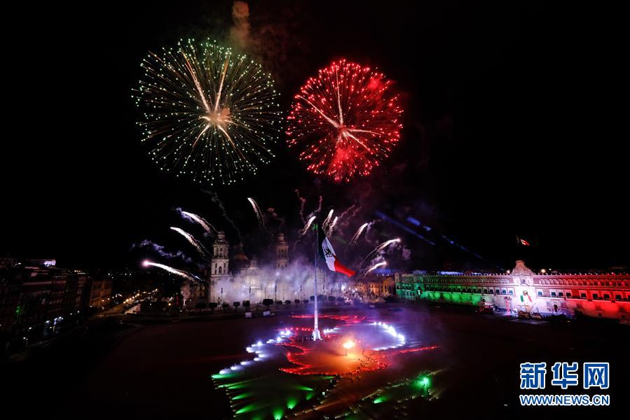 9月15日,在墨西哥首都墨西哥城中心的宪法广场,烟花绽放庆祝墨西哥独立210周年。 9月16日是墨西哥独立日。 新华社发(伊斯雷尔·罗萨斯摄)