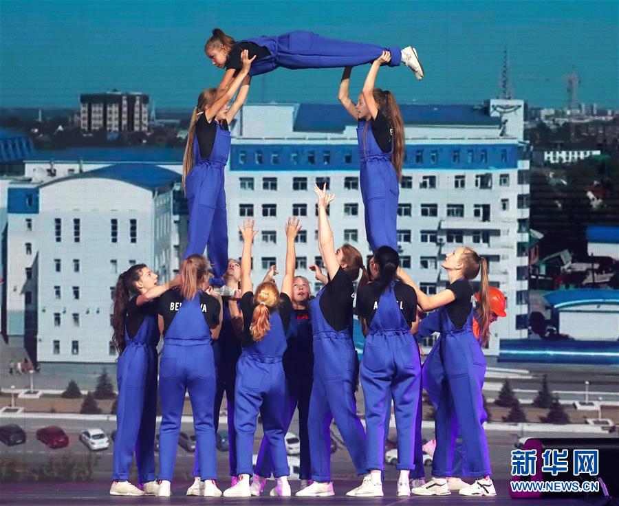 9月15日,学生们在白俄罗斯首都明斯克举行的世界技能大赛白俄罗斯赛区决赛开幕式上表演节目。 当日,世界技能大赛白俄罗斯赛区决赛在明斯克开幕,有来自白全国各地的400多名选手参加,优胜者将代表白方参加2021年在上海举行的第46届世界技能大赛。 新华社发(任科夫摄)