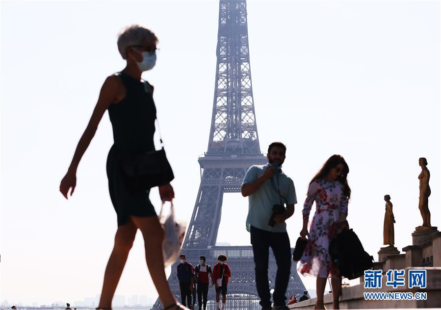 9月16日,人们走在法国巴黎埃菲尔铁塔附近的特罗卡德罗广场。 法国政府网站16日公布的数据显示,法国累计新冠确诊病例404888例。 新华社记者 高静 摄