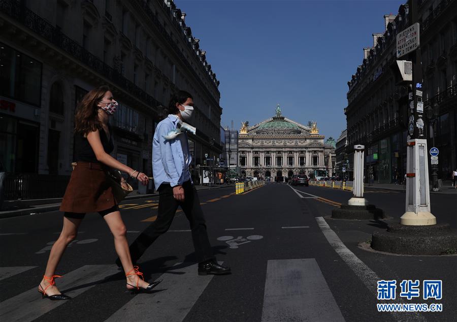 9月16日,行人戴口罩走在法国巴黎歌剧院附近。 法国政府网站16日公布的数据显示,法国累计新冠确诊病例404888例。 新华社记者 高静 摄