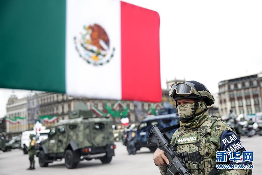 9月16日,在墨西哥首都墨西哥城,海军陆战队人员参加独立日阅兵。 9月16日是墨西哥独立日,墨西哥举行庆祝独立210周年阅兵活动。 新华社发(弗朗西斯科·卡涅多 摄)