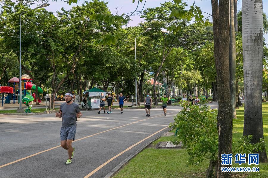 泰国曼谷市区内有大大小小的城市公园,这些都市“绿肺”不仅是曼谷市民休闲锻炼的绝佳场所,也是城市生态平衡的重要一环。曼谷市政府正通过植树以及新建公园的方式扩大市区绿化面积。 这是2020年8月24日,市民在泰国曼谷仑披尼公园跑步。 新华社记者 张可任 摄