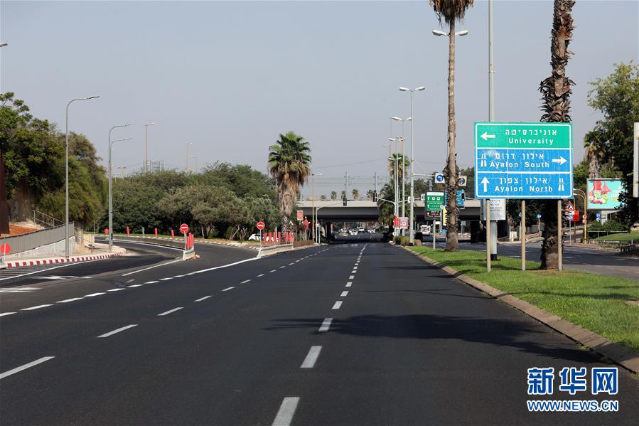 这是9月18日在以色列中部城市特拉维夫拍摄的空荡荡的道路。 以色列总理府和卫生部18日发布联合声明宣布,全国范围内的“封城”措施于14时生效。这是以色列继今年3月至5月实施全国“封城”后再度实施这一措施。 新华社/基尼图片社