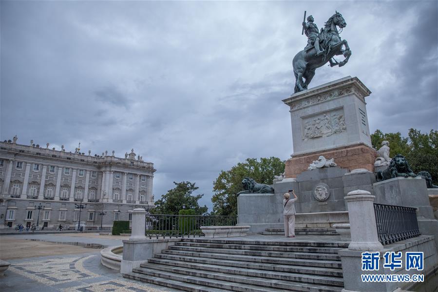 9月18日,一名游客在西班牙马德里参观费利佩四世纪念碑。 受新冠肺炎疫情影响,西班牙马德里城区内各大旅游景点游客稀少。美国约翰斯·霍普金斯大学19日发布的新冠疫情统计数据显示,西班牙累计新冠确诊病例达640040例。 新华社记者 孟鼎博 摄