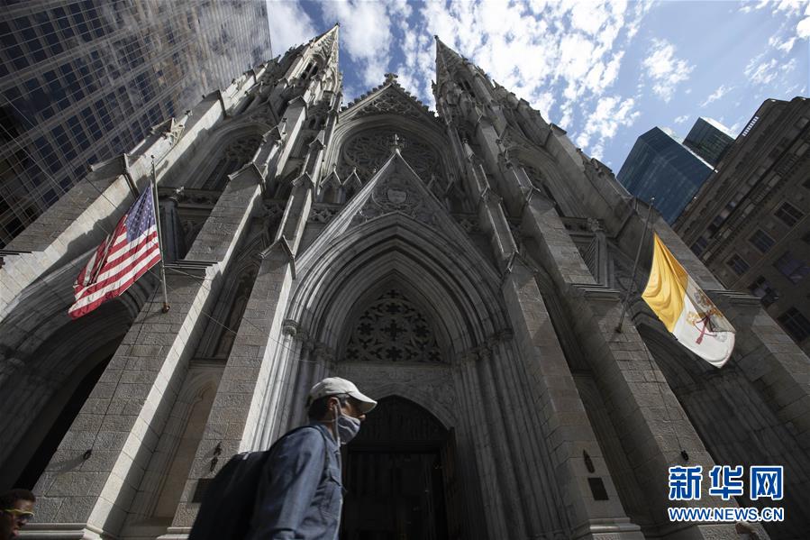 9月20日,行人经过美国纽约圣帕特里克大教堂。 美国约翰斯·霍普金斯大学发布的新冠疫情数据显示,截至美国东部时间20日20时22分(北京时间21日8时22分),美国累计新冠死亡病例达到199474例。 新华社记者 王迎 摄