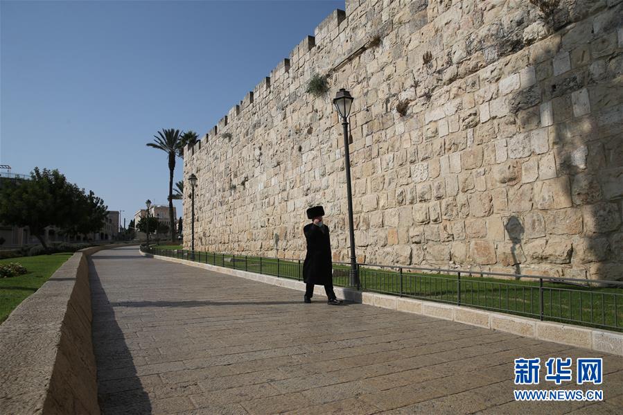 9月20日,佩戴口罩的行人从耶路撒冷老城城墙下走过。 为了防止新冠病毒的传播,耶路撒冷从18日起再度实施“封城”。 新华社发(穆阿迈尔·阿瓦德摄)