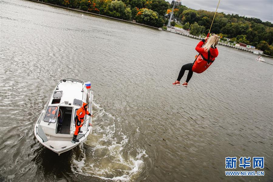9月21日,在俄罗斯首都莫斯科,工作人员在演练中营救“被困乘客”。 当日,俄罗斯紧急情况部在莫斯科进行演练,模拟缆车故障情况下的救援行动。 新华社发(马克西姆摄)