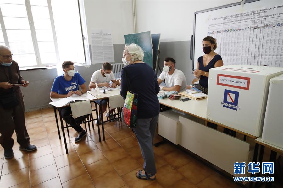 9月20日,一名老人来到意大利那不勒斯的一个投票站投票。新华社发