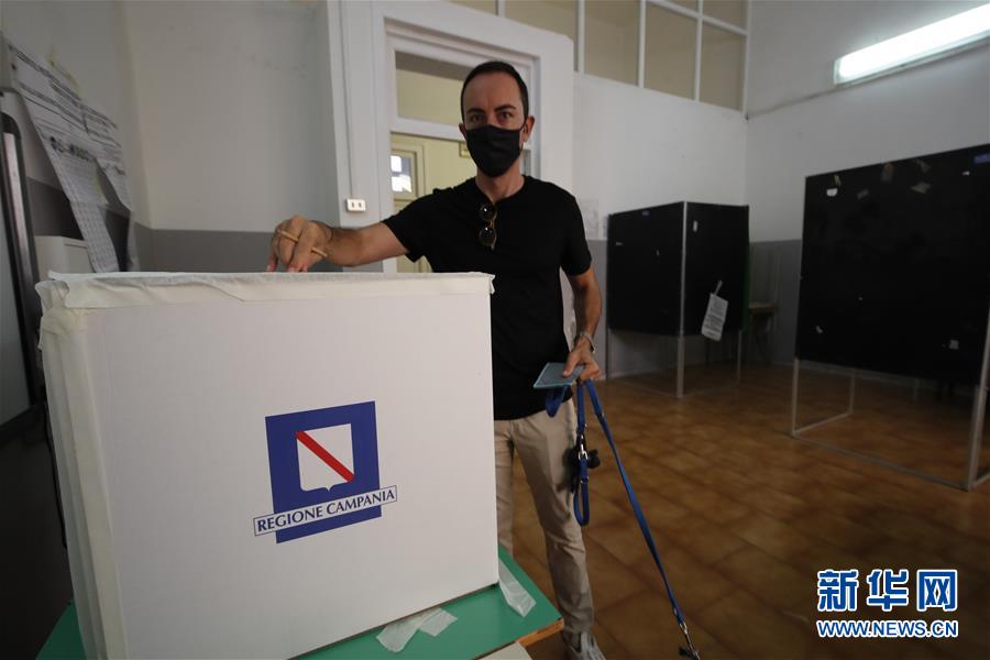 9月20日,一名男子在意大利那不勒斯的一个投票站投票。新华社发
