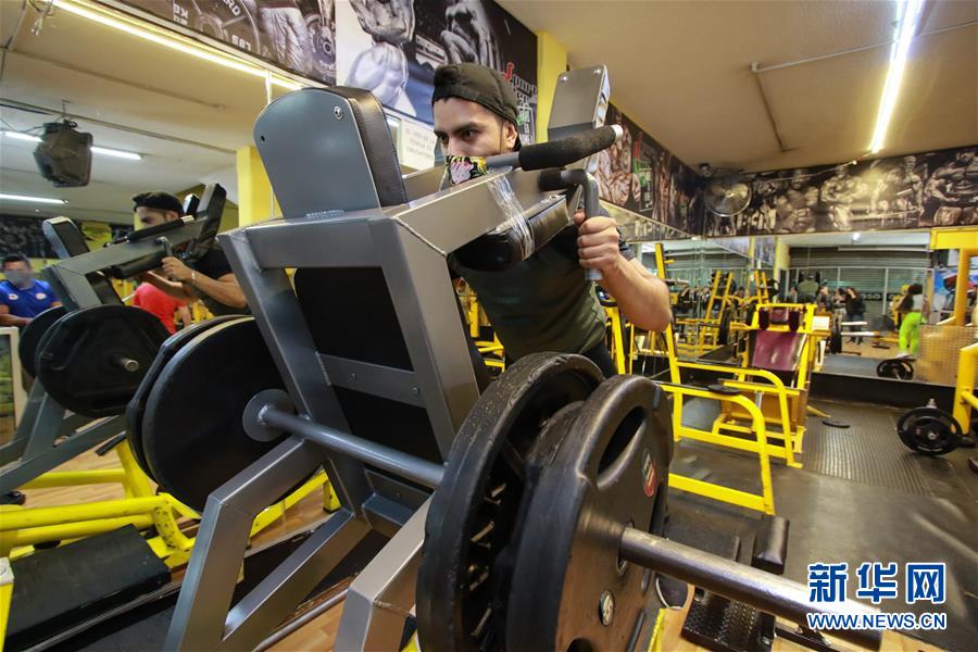 9月21日,在墨西哥首都墨西哥城的一家健身房内,一名男子戴口罩锻炼身体。 新华社发(洛佩斯 摄)