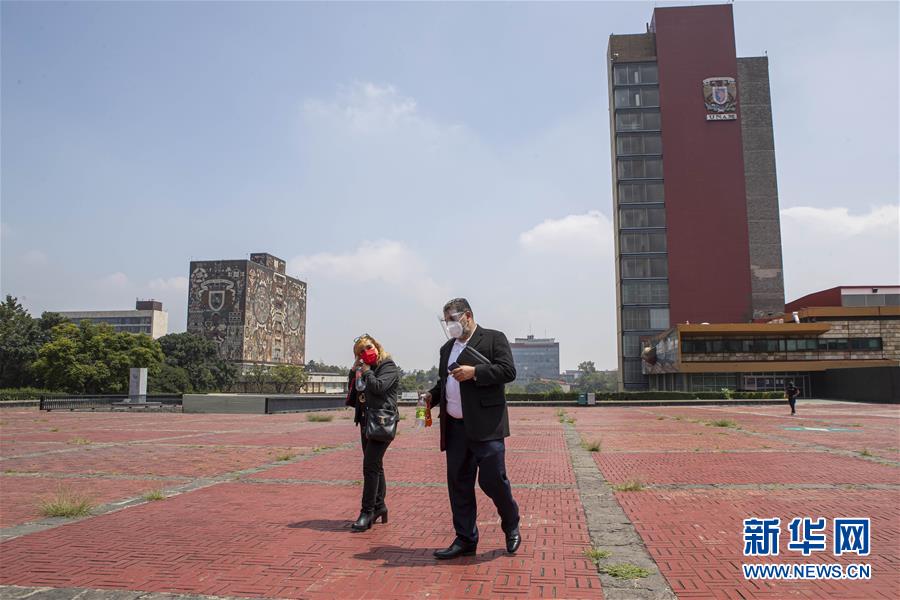 9月21日,人们佩戴口罩走在位于墨西哥城的墨西哥国立自治大学的校园内。新华社发(里卡多 摄)