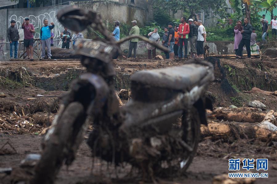 9月22日,在印度尼西亚西爪哇省苏加武眉,人们聚集在受灾现场。 印度尼西亚近日发生强降雨并引发洪水和山体滑坡等灾害。 新华社发(维里摄)