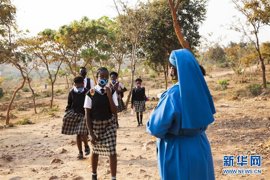 9月21日,在赞比亚首都卢萨卡,返校的学生排队接受体温检测。 赞比亚学校近日开始陆续全面复课。按照防疫要求,返校的学生必须佩戴口罩并保持一定社交距离,学校也配备洗手液等防疫物资供师生使用。 新华社发(马丁·姆班圭塔摄)