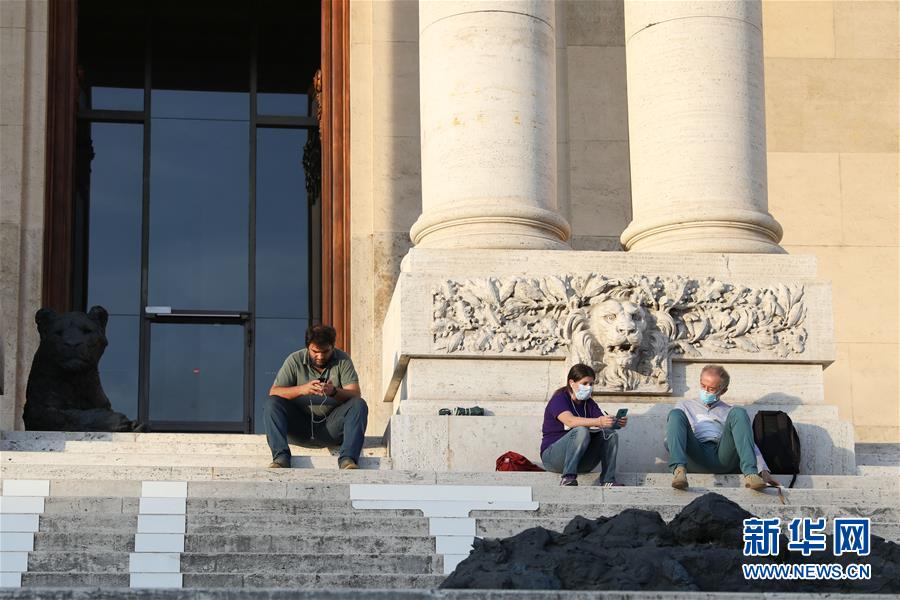 9月22日,人们坐在意大利罗马国立现代及当代艺术美术馆外。 根据意大利卫生部22日公布的最新统计数据,过去24小时该国新增1392例新冠肺炎确诊病例,累计确诊病例超30万例,达300897例,累计死亡35738例。 新华社记者 程婷婷 摄