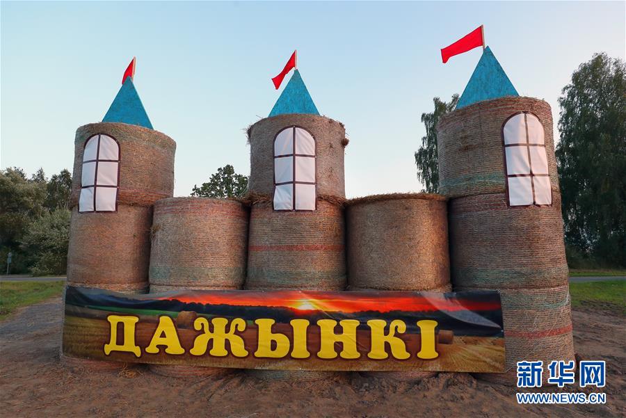 这是9月22日在白俄罗斯首都明斯克郊区拍摄的用干草捆搭建的城堡造型。 随着白俄罗斯秋收基本结束,各地公路边的田地中出现了用干草捆搭建的各种造型的艺术创作作品,这也是白俄罗斯农民每年庆祝秋收的独特方式之一。 新华社发(任科夫摄)