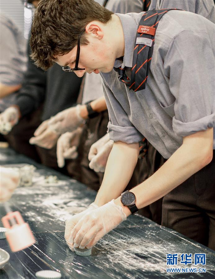 9月22日,在新西兰首都惠灵顿的斯科特中学,一名学生尝试制作中国月饼。 当日,新西兰斯科特中学的部分学生在学习中秋节来历、月饼起源等中国传统文化之余,体验中国月饼制作过程。该活动也是惠灵顿中国文化中心2020年“天涯共此时”活动的一部分。 新华社发(张健勇摄)