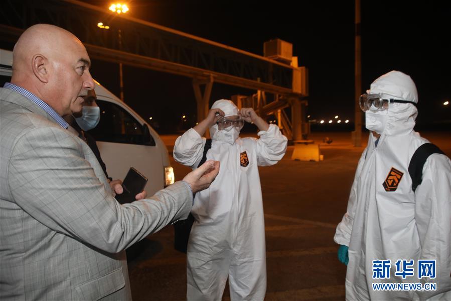 9月15日,在伊拉克巴格达,上海电气集团伊拉克华事德电厂项目经理贺庄(中)和同事抵达巴格达国际机场。新华社发