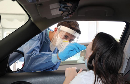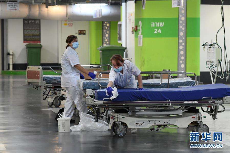 9月23日,在以色列北部城市海法的兰巴姆医疗中心,医务人员在一处由地下停车场改建的新冠病房内做准备工作。 以色列北部城市海法的兰巴姆医疗中心将一处地下停车场改建成病房,准备收治新冠患者。以色列卫生部23日数据显示该国新增新冠确诊病例11316例,创下该国疫情暴发以来单日新增病例数最高纪录。 新华社/基尼图片社