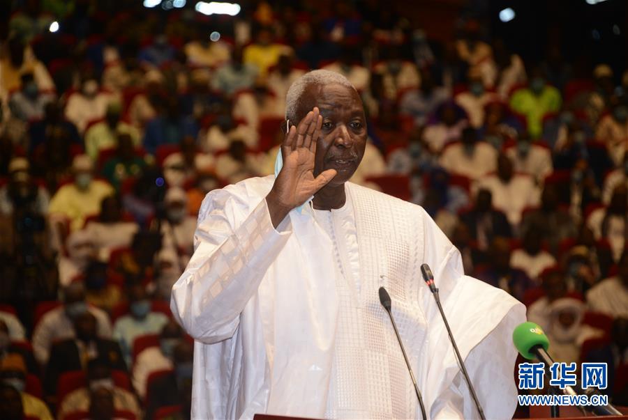 9月25日,在马里首都巴马科国际会议中心,马里过渡总统巴·恩多宣誓就职。 马里过渡总统巴·恩多和副总统、全国人民救赎委员会主席阿西米·戈伊塔25日宣誓就职,正式开启18个月的马里政治过渡期,开始朝着恢复宪政秩序迈进。 新华社发(哈比卜·库亚特 摄)