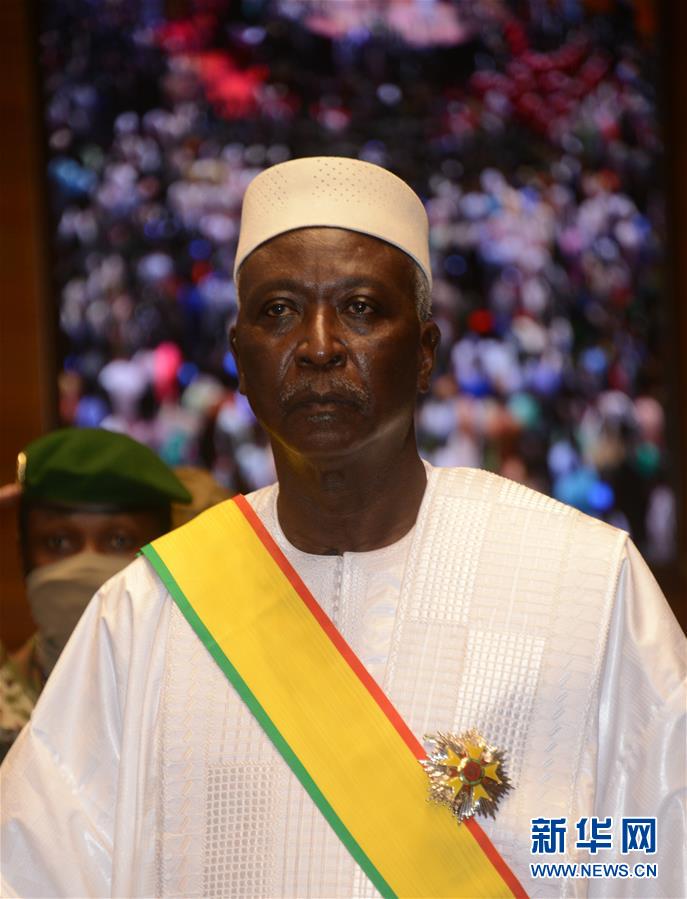 9月25日,在马里首都巴马科国际会议中心,马里过渡总统巴·恩多宣誓就职。 马里过渡总统巴·恩多和副总统、全国人民救赎委员会主席阿西米·戈伊塔25日宣誓就职,正式开启18个月的马里政治过渡期,开始朝着恢复宪政秩序迈进。 新华社发(哈比卜·库亚特 摄)