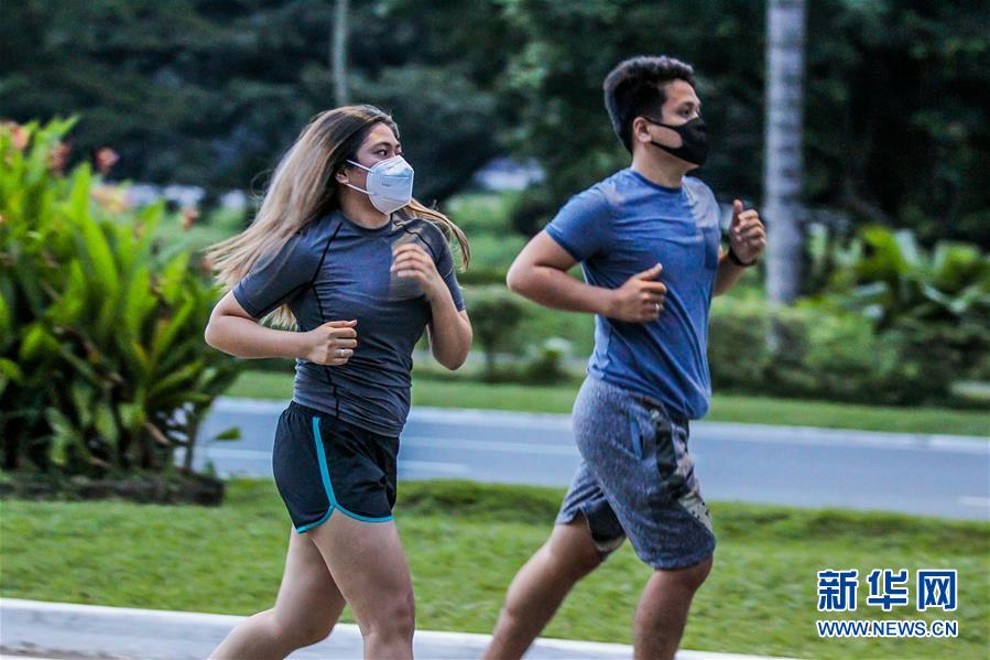9月26日,市民戴着口罩在菲律宾马尼拉跑步。 菲律宾卫生部26日通报说,截至当地时间26日16时,该国过去24小时新增新冠确诊病例2747例,累计确诊超过30万例,达301256例;新增死亡病例88例,累计死亡5284例。 新华社发(乌马利摄)