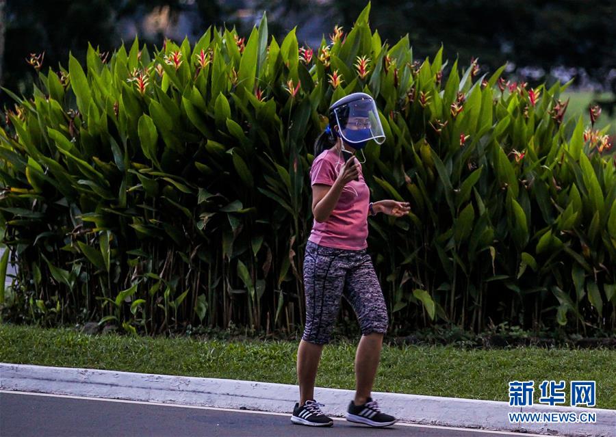 9月26日,市民戴着口罩和防护面罩在菲律宾马尼拉跑步。 菲律宾卫生部26日通报说,截至当地时间26日16时,该国过去24小时新增新冠确诊病例2747例,累计确诊超过30万例,达301256例;新增死亡病例88例,累计死亡5284例。 新华社发(乌马利摄)