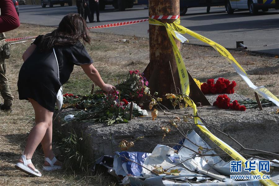 9月26日,当地居民在乌克兰哈尔科夫州的飞机坠毁现场外献花致哀。 乌克兰国家紧急情况局称,截至当地时间26日上午,在哈尔科夫州发生的军用飞机坠毁事故造成的死亡人数已升至26人。一架安-26军用飞机当地时间25日晚在哈尔科夫州丘古耶夫市附近坠毁。 新华社发(谢尔盖·斯塔拉斯坚科摄)