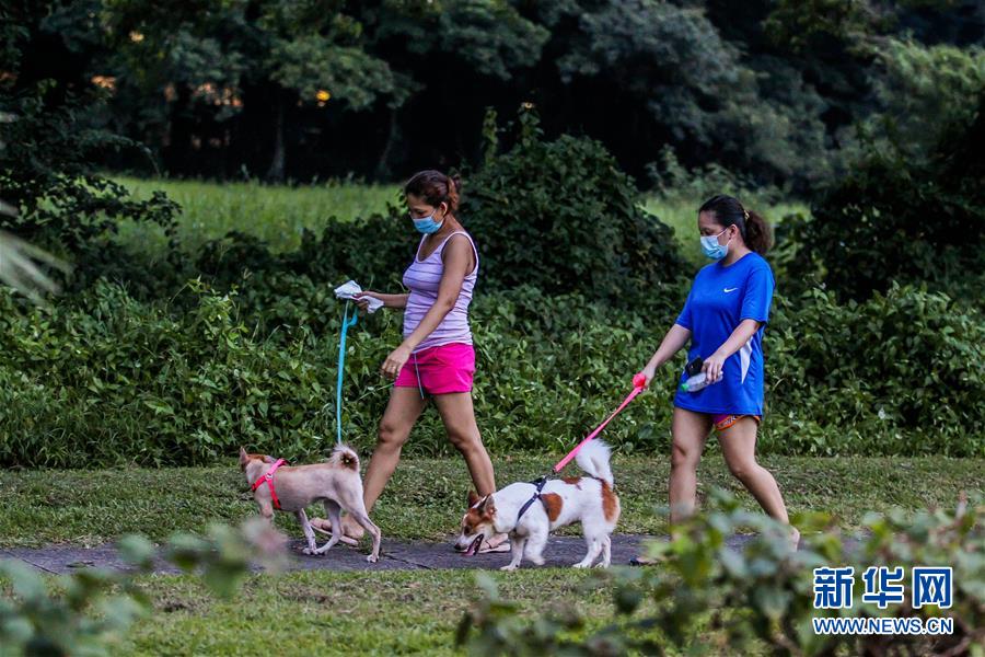 9月26日,市民戴着口罩在菲律宾马尼拉遛狗。 菲律宾卫生部26日通报说,截至当地时间26日16时,该国过去24小时新增新冠确诊病例2747例,累计确诊超过30万例,达301256例;新增死亡病例88例,累计死亡5284例。 新华社发(乌马利摄)