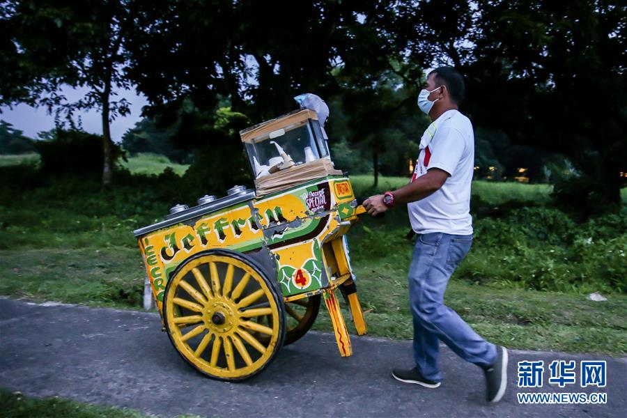9月26日,商贩戴着口罩在菲律宾马尼拉售卖冰激凌。 菲律宾卫生部26日通报说,截至当地时间26日16时,该国过去24小时新增新冠确诊病例2747例,累计确诊超过30万例,达301256例;新增死亡病例88例,累计死亡5284例。 新华社发(乌马利摄)