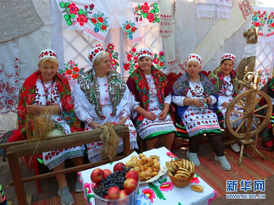 9月26日,在白俄罗斯首都明斯克郊区,人们身着民族服饰参加农业展销节。 随着当地秋收的基本结束,白俄罗斯各地相继举办农业展销节等活动,欢庆秋收。 新华社发(任科夫摄)